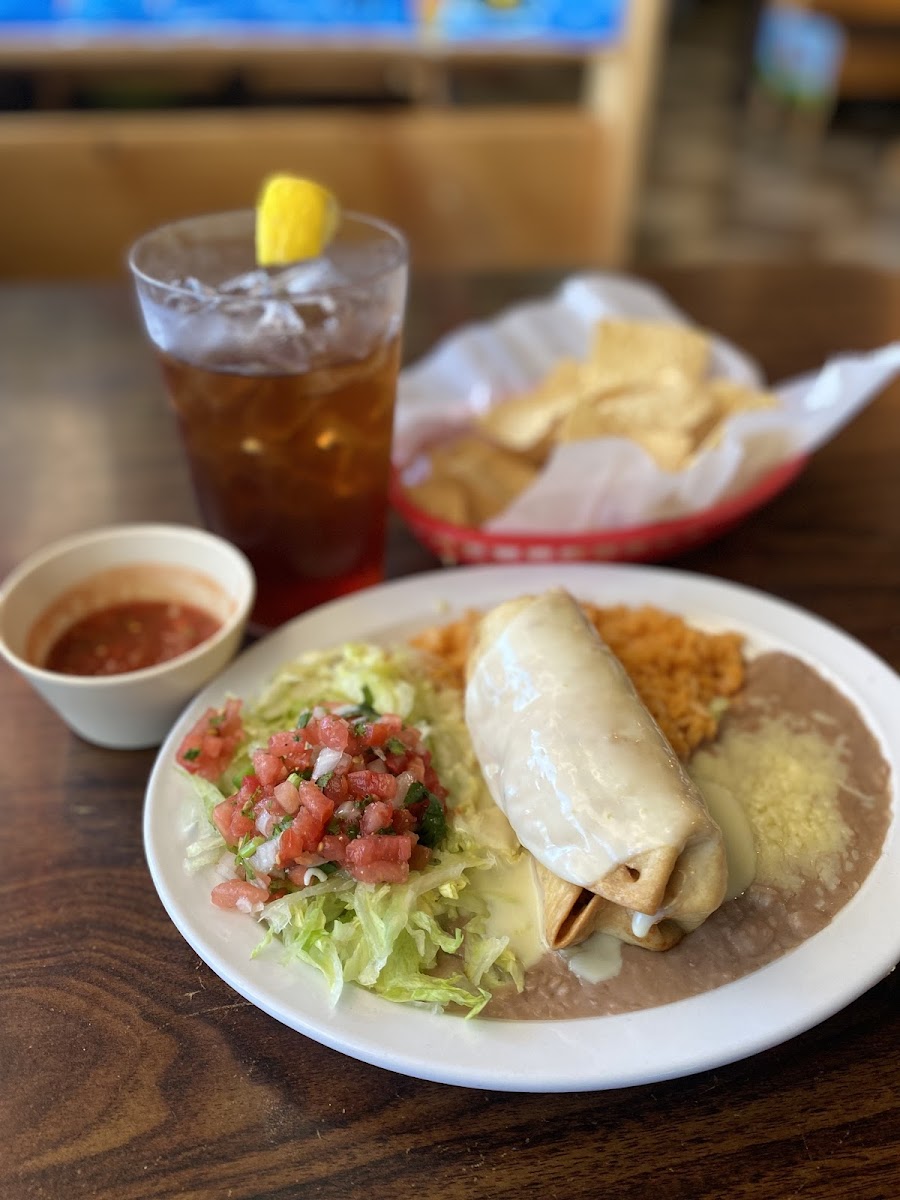 There is plenty of parking as this restaurant is in the corner of a big shopping strip. We were seated quickly and chips and salsa arrive at our table within 30 seconds. The chips weren’t that great but the salsa was good. They bring a small bowl of it, however. I had asked for a side of cilantro. I got a tiny plastic cup of it. I forgot to see what they charged me for it, but would’ve liked more. It did take our server about 10 minutes to get to us for our drink orders, however. By that time, we knew what we wanted for our meals and ordered accordingly. The water and soda cups are HUGE. I also ordered the chorizo queso. It was about $4-5 for a small bowl and $12 for a large. Absolutely delicious! But be mindful if you have high blood pressure. The salt is salting! We made it in time for their lunch specials. I was surprised that they have them on the weekends, but sure enough they did! I got the #14 which is a spinach enchilada, a beef taco and a pork tamale. They were all VERY tasty! Our server was polite and friendly. I failed to get her name, however, which is something I like to do. A positive lunch experience and will come back.